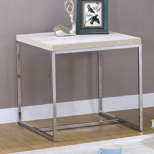 MeridianGive your room an upscale boost with the addition of this 20-inch Omni end table. Made from white faux marble, this table looks so genuine that no ...