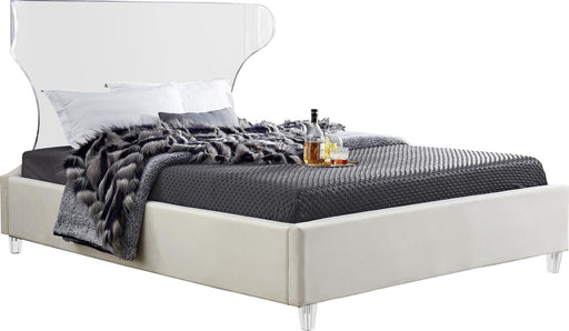 There's nothing scary about the Ghost cream velvet full size bed, with its plush cushioned and upholstered side rails and footboard. A curved trans...