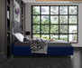 There's nothing scary about the Ghost navy velvet king size bed, with its plush cushioned and upholstered side rails and footboard. A curved transparent acrylic headboard allows you to situate it in front of a window without blocking the view, and matching acrylic legs offer a beautiful contemporary appearance. This bed has a complete set of slats included for your convenience, so you won't need to purchase a box spring.