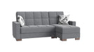 Ottomanson Armada Collection Upholstered Convertible Chaise Lounge with Storage, Grey Microfiber