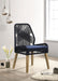 Capture the exotic flavor of this fun dining chair. Perfect for everyday use in a dressed up casual space, its sleek grey woven seat and seat back reflects an artful, inspirational design. Weathered wash finish wood legs taper slightly and slant just enough to create a balanced silhouette. This light, airy chair is ideal for a sun porch or a compact corner space. Choose a glass or wood table to enhance its stylish appeal.