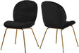 Make an impression on diners with this Paris Black Velvet Dining Chair. This dining chair features velvety sleek upholstery that feels luxurious against the skin and that holds up well to normal everyday use. The all-metal base is finished in a gleaming gold finish for a luxe, modern look and dependable wear-and-tear. Each seat is plumply padded to ensure guests are comfortable from start to finish.