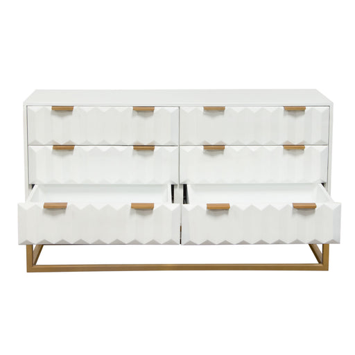 Spectrum 6-Drawer Solid Mango Wood Dresser in White Finish w/ Gold Finished Iron Legs by Diamond Sofa