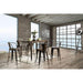 This industrial inspired dining set is a great addition to any restoration-decorated dining space. The metal legs and chair frames contrast beautifully with the wooden table top and seat. Tapering legs sturdily uphold the entire piece while adding a touch of modern eccentricity.