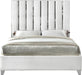 Create a bold yet welcoming sanctuary in your bedroom with this Enzo White Velvet Queen Bed. The chrome channel design features velvet fabric upholstery for a sleek, glamorous look. The chrome legs provide support for the plank-style base, ensuring durability and long-lived beauty. Full slats are included, making setup easy and quick. No box spring is required with this bed, so you can use it with your choice of mattress.