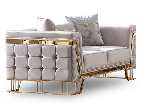 New Classic (East)Dimensions: 72.2"L x 41.0"W x 46.8"H The Monique Royal Classic Loveseat in champagne exemplifies heirloom-quality craftsmanship and timeless elegan...