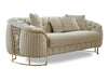 Lucas Sofa Set not only provides a comfortable seating experience but also offers an aesthetic feast. It features armrests with chester pattern, golden metal legs, and is enriched with special color options.