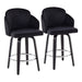 Dahlia Contemporary Counter Stool in Black Wood and Black Velvet with Gold Metal Accent and Round Chrome Footrest by LumiSource - Set of 2