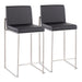 Fuji Contemporary High Back Counter Stool in Stainless Steel and Black Faux Leather by LumiSource - Set of 2