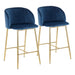 Fran Contemporary Counter Stool in Gold Steel and Blue Velvet by LumiSource - Set of 2