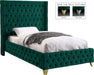 Savan Purple Velvet Twin Bed - Rich Purple Velvet - Deep Button Tufting - Gold and Chrome Legs Included with Each Bed - Full Slats (No Box Spri...