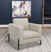 Introducing our impeccably designed modern chair, where sophistication meets comfort. With its clean lines and impeccable tailoring, this sofa exudes elegance. The subtle textured herringbone fabric offers a refined touch, setting it apart in the realm of contemporary furniture. Prioritizing your comfort, the attached seats are constructed with pocket coils, ensuring both support and durability. The sofa's allure is further accentuated by its unique elevated metal leg base, finished in a sleek black. This piece is not merely a sofa; it's a statement of style and luxury, ready to elevate any living space.