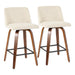 Toriano Mid-Century Modern Counter Stool in Walnut and Cream Fabric by LumiSource - Set of 2
