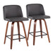 Toriano Mid-Century Modern Fixed-Height Counter Stool in Walnut Wood with Square Black Footrest and Grey Faux Leather by LumiSource - Set of 2