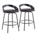 Grotto Claire Fixed-Height Counter Stool with Swivel in Black Steel, Black Wood, and Black Faux Leather with Black Footrest by LumiSource - Set of 2