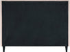 Snuggle up to a pet or other loved one in this richly upholstered Eva pink velvet king size bed for the ultimate in rest and relaxation. The wing back headboard has cushioned vertical deep channel tufting, and both the side rails and footboard are upholstered too for your comfort. Tapered black wood legs match the upholstery and support this contemporary bed, elevating it sufficiently that you can store items underneath.
