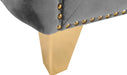 Upholstered in soft grey velvet, this Michelle love seat is sumptuously glamorous. Designed for upscale living, this chair features rich gold nail head trim and gold iron legs that keep it grounded in contemporary beauty. Tufted material covers every inch of this unit, and button tufting ensures that the unit stays plump and comfortable and holds up well to continual use. Pair it with other items in the collection for a cohesive look.