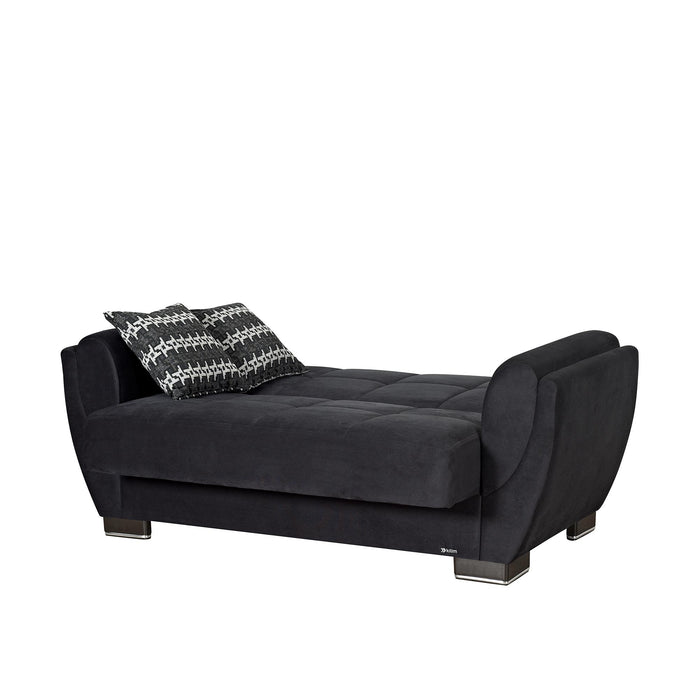 Ottomanson Armada Air Collection Upholstered Convertible Loveseat with Storage, Black Microfiber